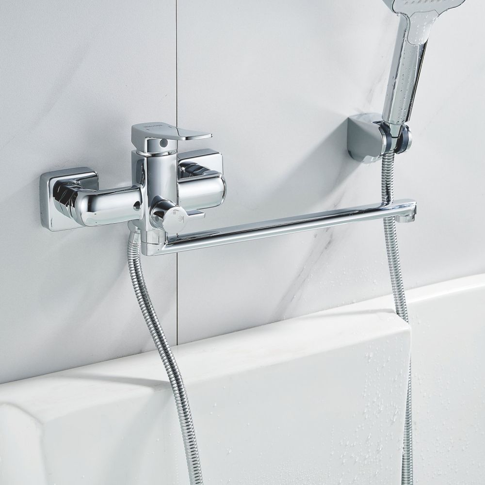 В комплекте со смесителем поставляются эксцентрики, настенный держатель для душевой лейки и декоративные отражатели, что избавит вас от дополнительных затрат и хлопот при установке. Керамический картридж и рычажное управление обеспечивают плавное и точное регулирование температуры воды.