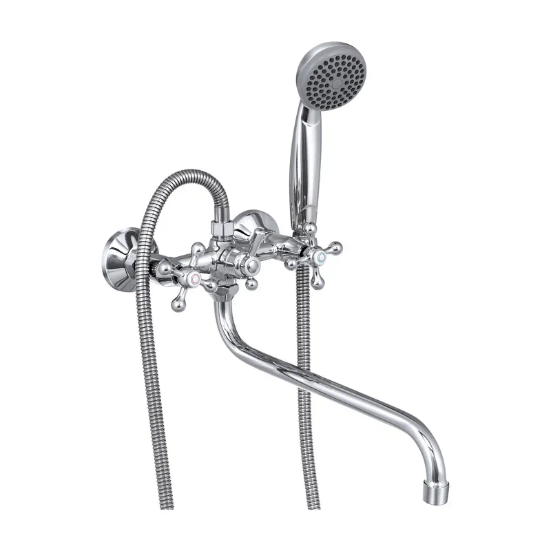 Современный двухрычажный смеситель для ванны с длинным поворотным изливом от компании «СЛАВЕН» c собственной сборочной линией полного цикла в Подмосковье.