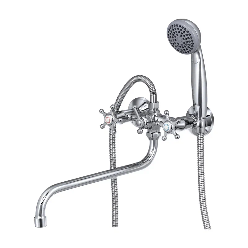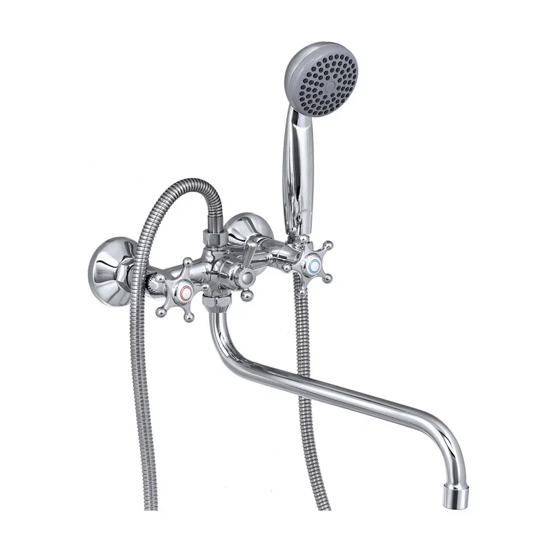 Современный двухрычажный смеситель для ванны с длинным поворотным изливом от компании «СЛАВЕН» c собственной сборочной линией полного цикла в Подмосковье.