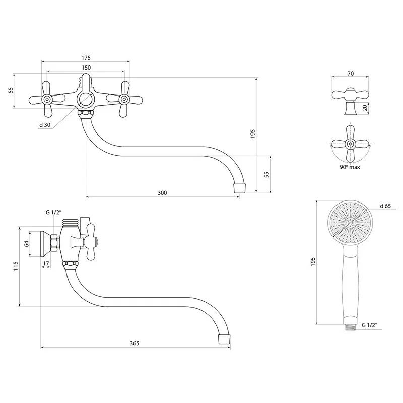 Места установки: Умывальник, Ванна;