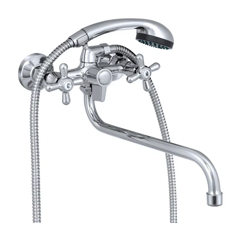 Современный двухрычажный смеситель для ванны с длинным поворотным изливом от компании «СЛАВЕН» c собственной сборочной линией полного цикла в Подмосковье.