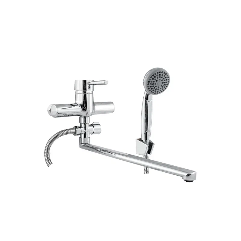 Современный однорычажный смеситель для ванны с длинным поворотным изливом от компании «СЛАВЕН» c собственной сборочной линией полного цикла в Подмосковье.