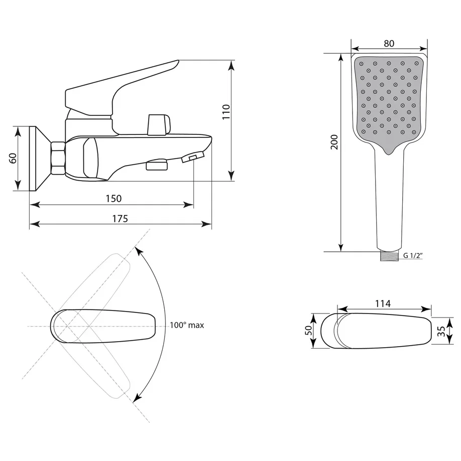 Тип лейки: Лейка душевая, 1 режим;
