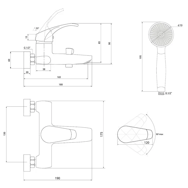 Тип лейки: Лейка душевая, 1 режим;