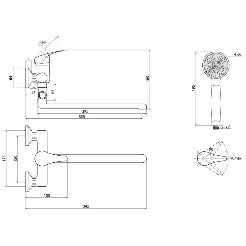 Тип лейки: Лейка душевая, 1 режим;