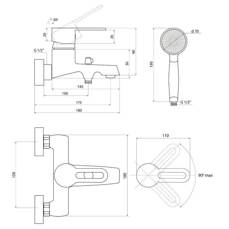 Комплектуется душевым шлангом в металлической оплетке с однорежимной лейкой, паспортом изделия с гарантийным талоном, универсальным гаечным ключом.