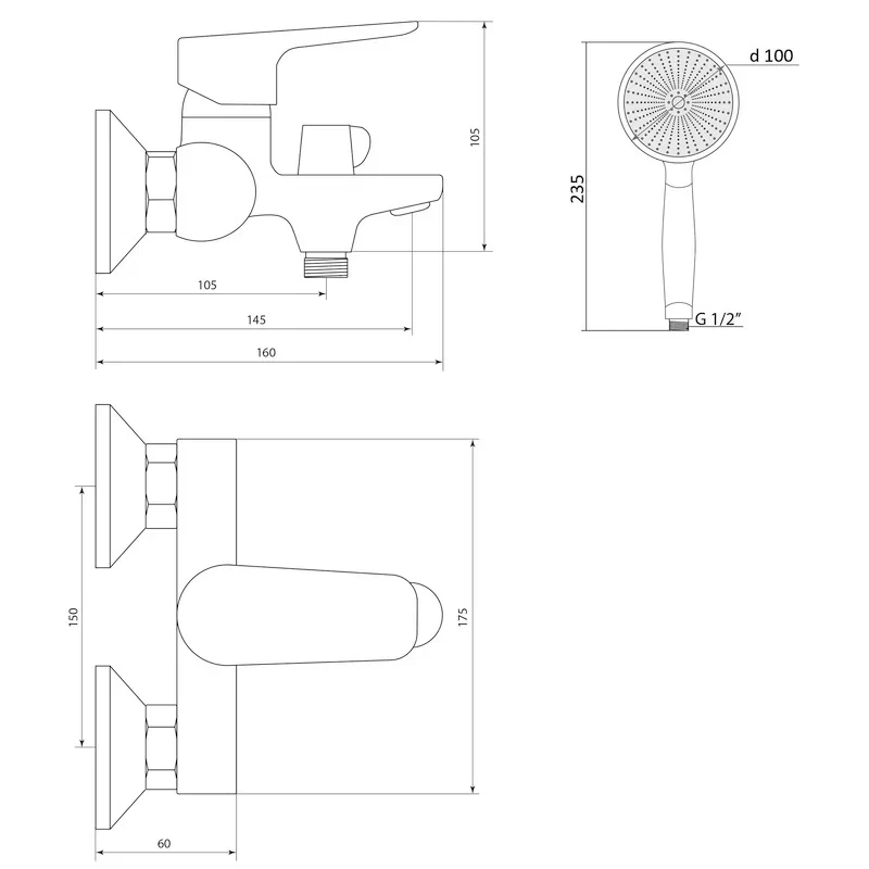 Тип лейки: Лейка душевая, 1 режим;