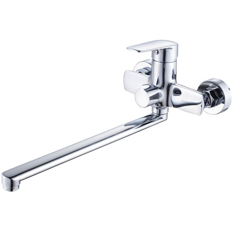 Шведский однорычажный универсальный смеситель для ванны с длинным изливом Swedbe Mars 1750 - универсальное решение для небольшой по размерам ванной комнаты. Благодаря длине излива смеситель можно использовать как для наполнения ванны, так и для умывания в раковине. Дивертер с фиксацией предоставляет возможность бесперебойно принимать душ, не допуская самопроизвольного перенаправления воды из лейки в кран при скачках давления в водопроводной системе. Излив сделан без единого шва по сложнейшей технологии, которая гарантирует стойкость к химическим и механическим воздействиям, исключает возможность протечки.