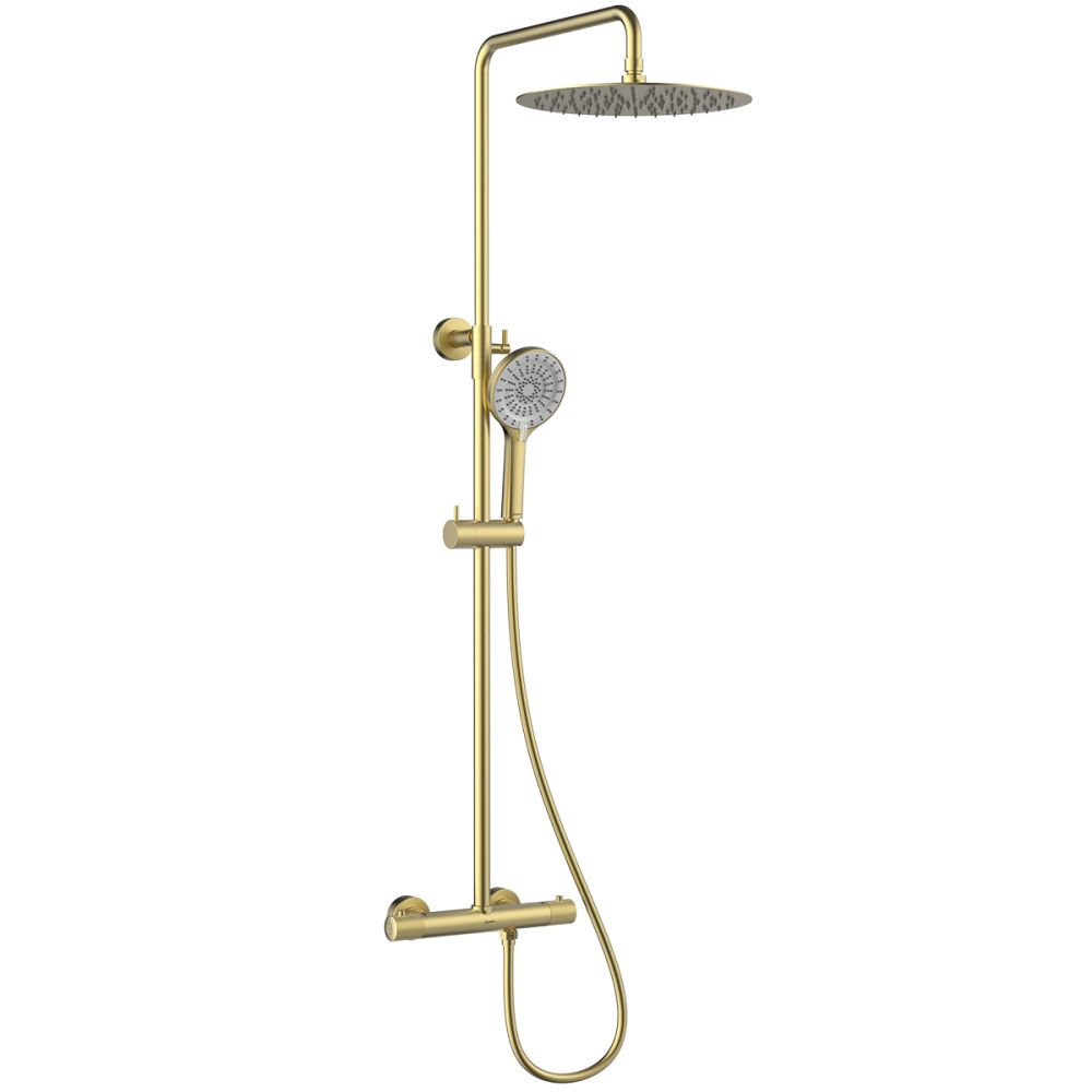 Корпус смесителя с термостатическим картриджем, 3-позиционным картриджным переключателем с керамическими пластинами и металлическими рукоятками, стойка для душа, держатель душевой лейки, 3-функциональная душевая лейка, душевой шланг 1,5 м, присоединительная группа для настенного крепления |