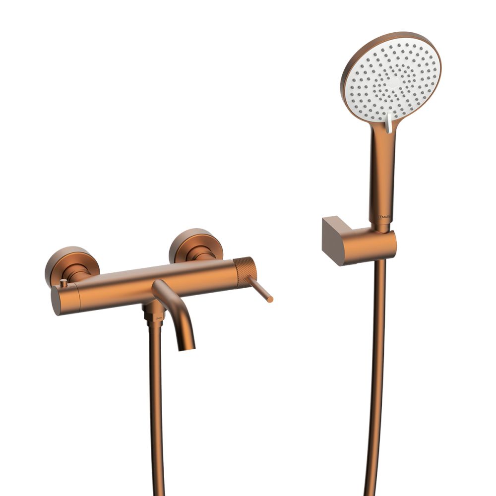 Корпус смесителя с монолитным изливом с аэратором, картриджем с керамическими пластинами, 2-функционильным картриджным пластинами и металлическими рукоятками; Прокладка ¾" (2 шт.); Декоративный отражатель (2 шт.) Эксцентриковый переходник G½" (2 шт.); Держатель душевой лейки; Колпачок; Дюбель (2 шт.); Шуруп (2 шт.); 3-функциональная душевая лейка; Душевой шланг 1,5 м (ПВХ) в комплекте с прокладками ½" (2 шт.); Ключ для аэратора |