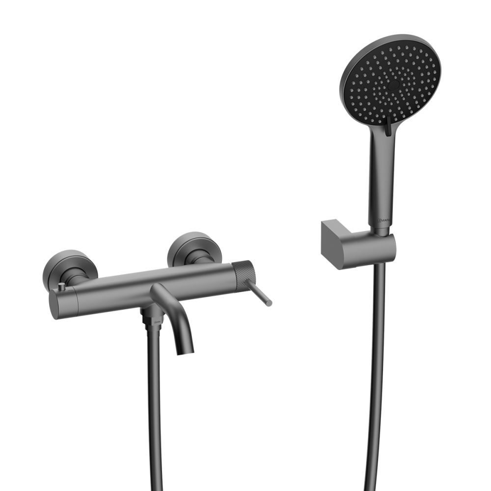 Корпус смесителя с монолитным изливом с аэратором, картриджем с керамическими пластинами, 2-функционильным картриджным пластинами и металлическими рукоятками; Прокладка ¾" (2 шт.); Декоративный отражатель (2 шт.) Эксцентриковый переходник G½" (2 шт.); Держатель душевой лейки; Колпачок; Дюбель (2 шт.); Шуруп (2 шт.); 3-функциональная душевая лейка; Душевой шланг 1,5 м (ПВХ) в комплекте с прокладками ½" (2 шт.); Ключ для аэратора |