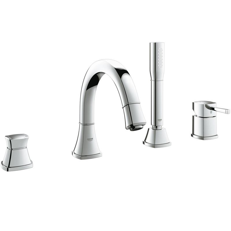 Однорычажный смеситель на борт ванны Grohe Grandera 19936000 с фиксированным изливом и аэратором.