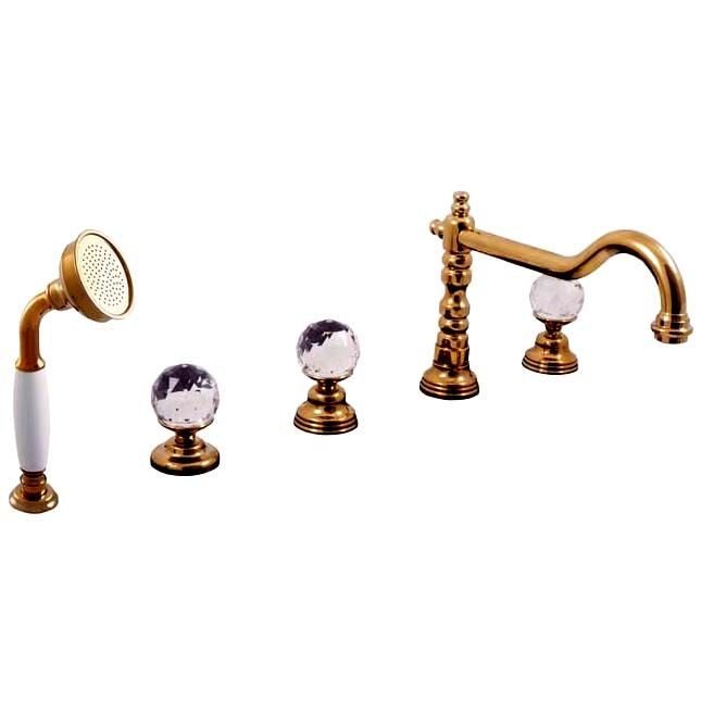 Смеситель на борт ванны Rav Slezak Brilliance164.5P монолитный, с душевым гарнитуром, изготовлен из высококачественной латуни, которая исключает какую-либо коррозию. Латунные рукоятки c граненым хрусталем от чешского производителя Preciosa Bohemie Glass. Качественные керамические кран буксы, гарантируют долговечность и мягкий поток воды, производство Германия. Керамический переключатель душ/излив. Шланг с пружиной, которая обеспечивает его лёгкое возвращение в держатель. Длина шланга 2000 мм. Латунная душевая лейка с керамической ручкой. В комплекте смеситель, шланг, душевая лейка и комплект крепления.