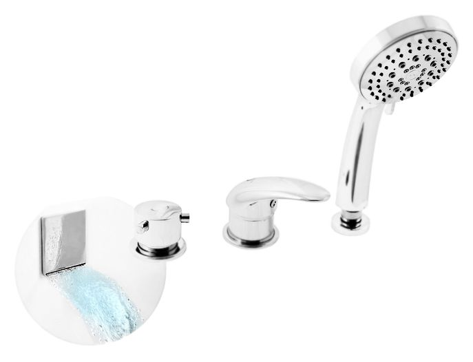 Смеситель на борт ванны Rav Slezak Dunaj D463.5P с душевым гарнитуром, изготовлен из высококачественной латуни, которая исключает какую-либо коррозию. Излив монтируется в ванну. Латунные рукоятки. Качественный керамический картридж 40 мм Kerox, производство Венгрия, гарантирует долговечность и мягкий поток воды. Керамический переключатель душ/излив. Пластиковый шланг с пружиной, которая обеспечивает лёгкое возвращение шланга в держатель. Длина шланга 2000 мм. Пластиковая душевая лейка с пятью режимами, с антикальк резиновыми насадками. В комплекте смеситель, шланг, душевая лейка и комплект крепления.
