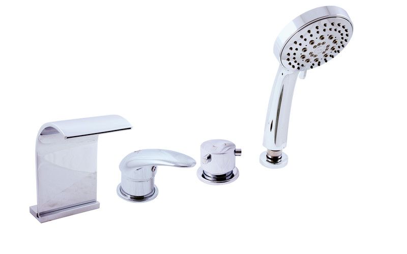 Rav Slezak Dunaj D467.5P каскадный смеситель для ванны. Врезной на 4 отверстия. В состав комплекта входит: керамический переключатель, керамический картридж 40 мм, душевой шланг с пружиной, душевая лейка, гибкая подводка 1/2.
