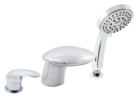 Rav Slezak Dunaj D471.5Y каскадный смеситель для ванны. Врезной на 3 отверстия. В состав комплекта входит: керамический переключатель в миксе ручки, картридж 40 мм, душевой шланг с пружиной, душевая лейка, гибкая подводка 1/2.