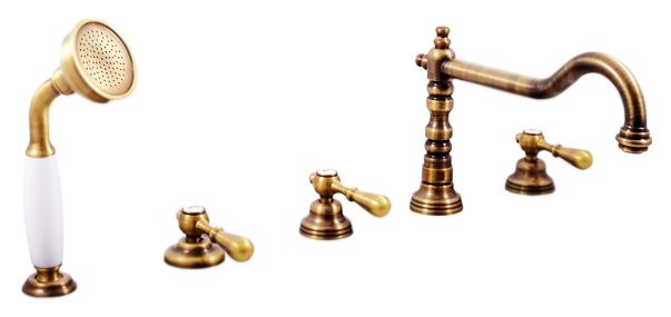 Смеситель на борт ванны Rav Slezak Morava retro MK464.5PSM монолитный, с душевым гарнитуром, изготовлен из высококачественной латуни, которая исключает какую-либо коррозию. Латунные рукоятки. Керамическиe кран буксы, производство Германия. Керамический переключатель душ/излив. Металлический шланг с двойной оплеткой, с пружиной, которая обеспечивает лёгкое возвращение шланга в держатель. Длина шланга 2000 мм. Металлическая душевая лейка. В комплекте смеситель, шланг, душевая лейка, гибкая подводка и комплект крепления.