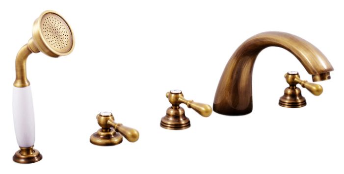 Смеситель на борт ванны Rav Slezak Morava retro MK469.5PSM монолитный, с душевым гарнитуром, изготовлен из высококачественной латуни, которая исключает какую-либо коррозию. Латунные рукоятки. Керамическиe кран буксы, производство Германия. Керамический переключатель душ/излив. Металлический шланг с пружиной, которая обеспечивает лёгкое возвращение шланга в держатель. Длина шланга 2000 мм. Латунная душевая лейка. В комплекте смеситель, шланг, душевая лейка, гибкая подводка и комплект крепления.
