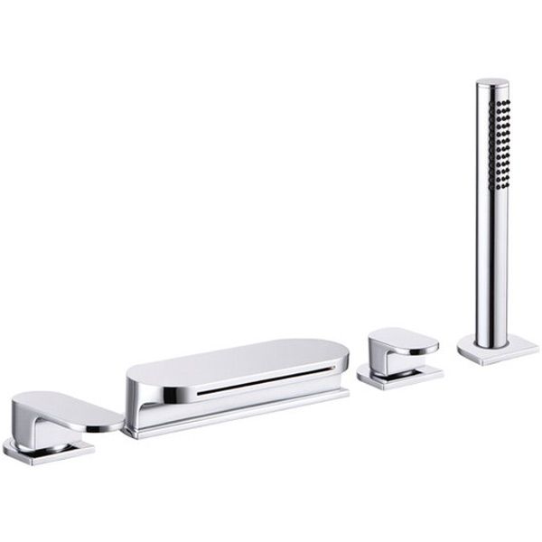 Однорычажный смеситель с фиксированным каскадным изливом Водопад, монтируемый в четыре отверстия. Имеет долгий срок эксплуатации за счет качественных деталей, неприхотлив в уходе. Превосходно подойдет для различных вариантов дизайна ванной комнаты.