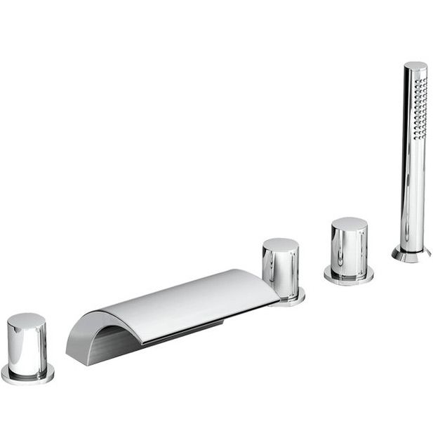 Двухвентильный смеситель с фиксированным каскадным изливом Водопад, монтируемый в пять отверстий. Имеет долгий срок эксплуатации за счет качественных деталей, неприхотлив в уходе. Превосходно подойдет для различных вариантов дизайна ванной комнаты.