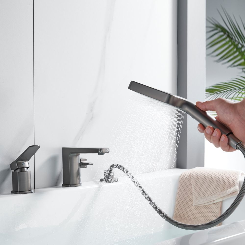 смеситель,излив с переключателем потоков, лейка, шланг, держатель лейки, гибкая подводка, комплект креплений |