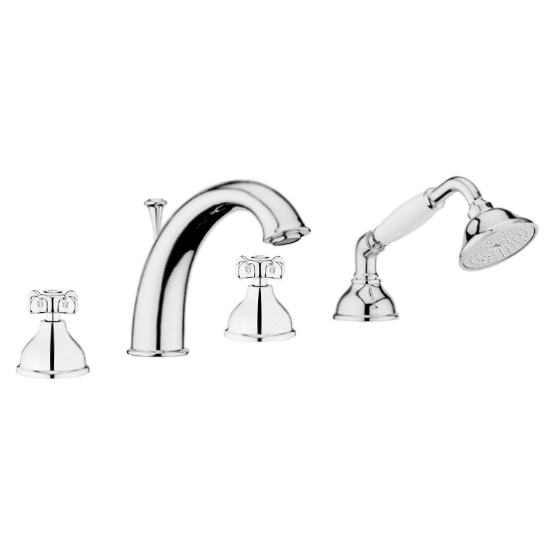 Смеситель на борт ванны Webert Ottocento OT730101015 двухвентильный, устанавливаемый в четыре отверстия, в комплекте с душевым гарнитуром.