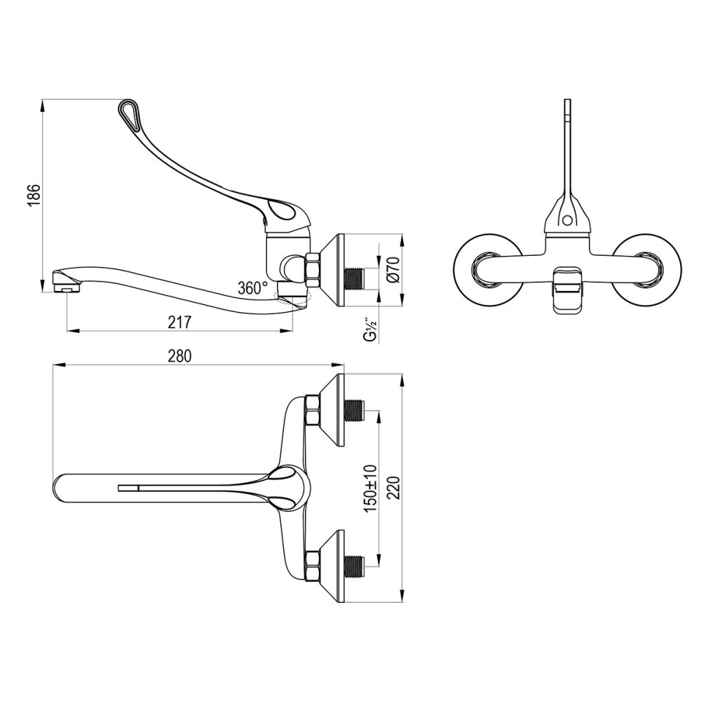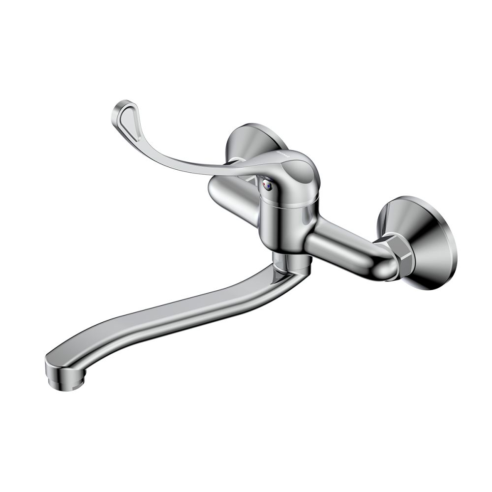 Корпус смесителя с картриджем с керамическими пластинами и металлической рукояткой S-образный поворотный излив с аэратором Присоединительная группа для настенного крепления |