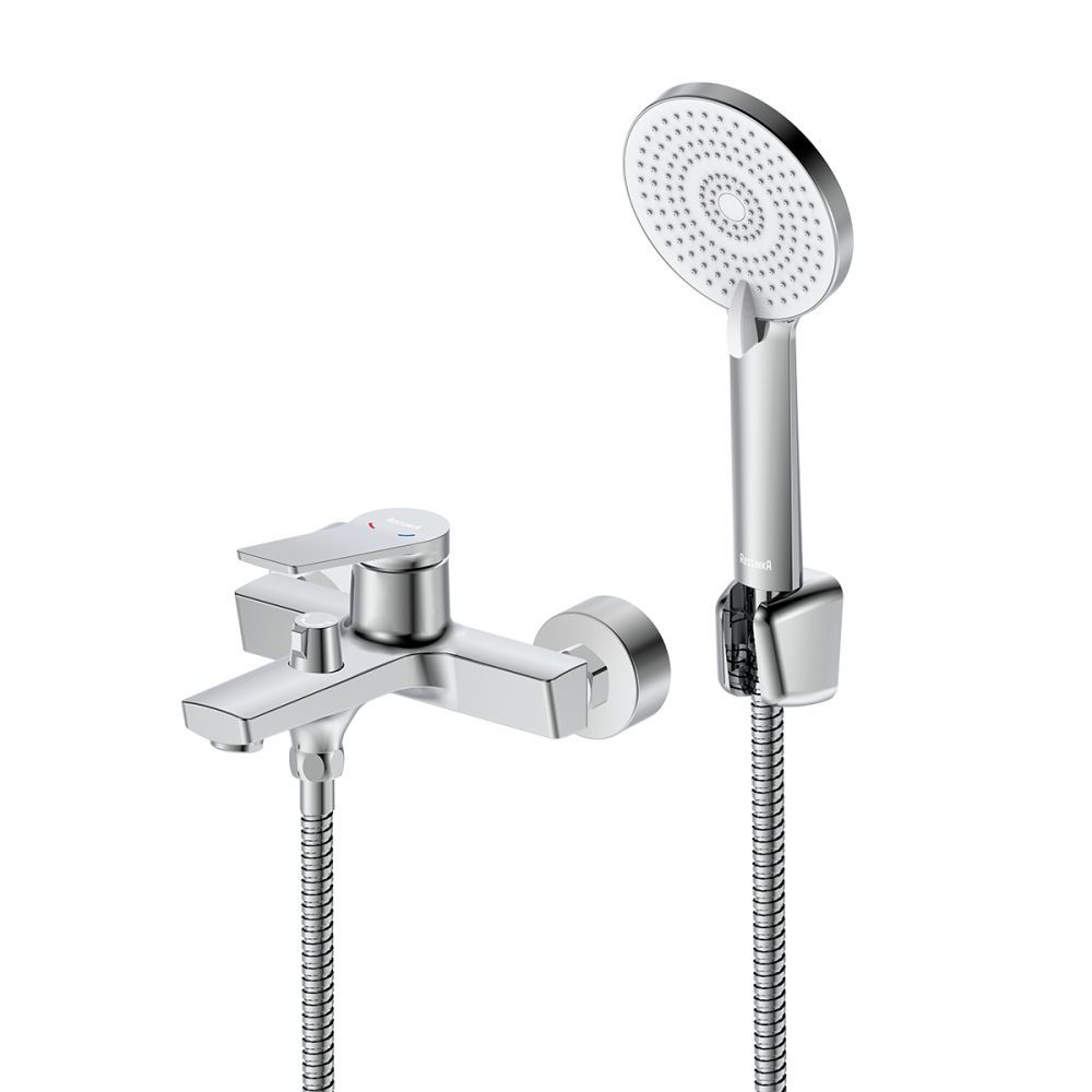 Корпус смесителя с монолитным изливом с аэратором, картриджем с керамическими пластинами, переключателем-дивертором с керамическими пластинами и металлической рукояткой Душевой шланг 1,5 м 3-функциональная душевая лейка Настенное крепление для душевой лейки Присоединительная группа для настенного крепления |