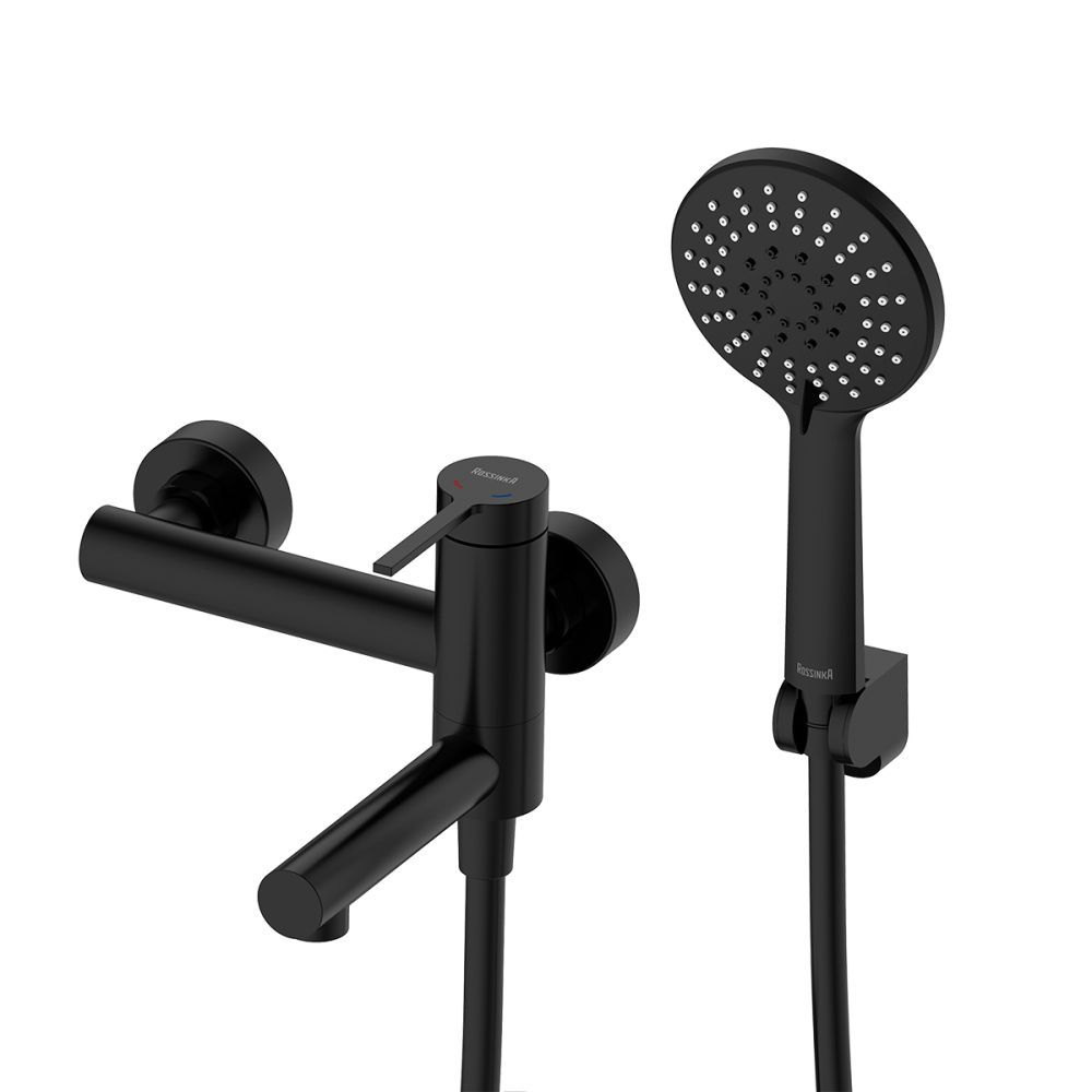 Корпус смесителя с поворотным изливом с аэратором , картриджем с керамическими пластинами; Декоративный отражатель (2 шт.); Душевой шланг 1,5 м (ПВХ); 5-функциональная душевая лейка; Настенное крепление для душевой лейки; присоединительная группа для настенного крепления |