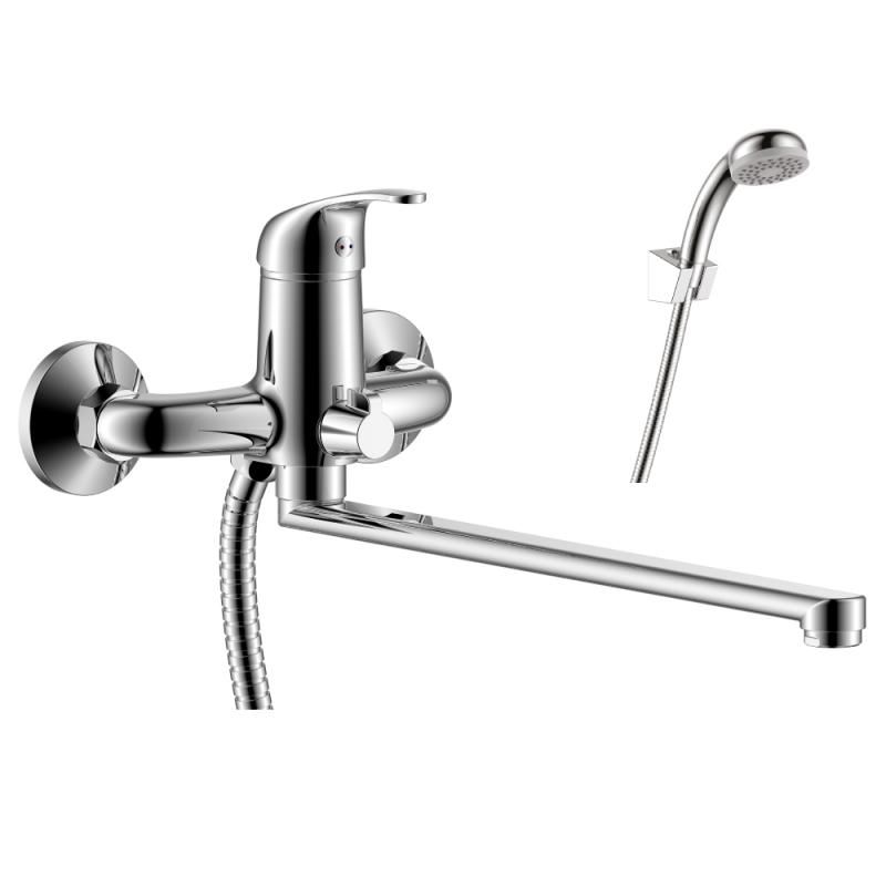 Смеситель Rossinka Y35-32 для ванны универсальный. Аксессуары в комплекте (шланг 1,5 м, настенное крепление, 1-функциональная лейка с функцией легкой очистки).