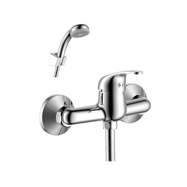 Смеситель для душа Rossinka Y35-41, однорычажный. Аксессуары в комплекте (шланг 1,5 м, настенное крепление, 1-функциональная лейка с функцией легкой очистки). Присоединительная группа (эксцентрики с отражателями) для вертикального крепления.