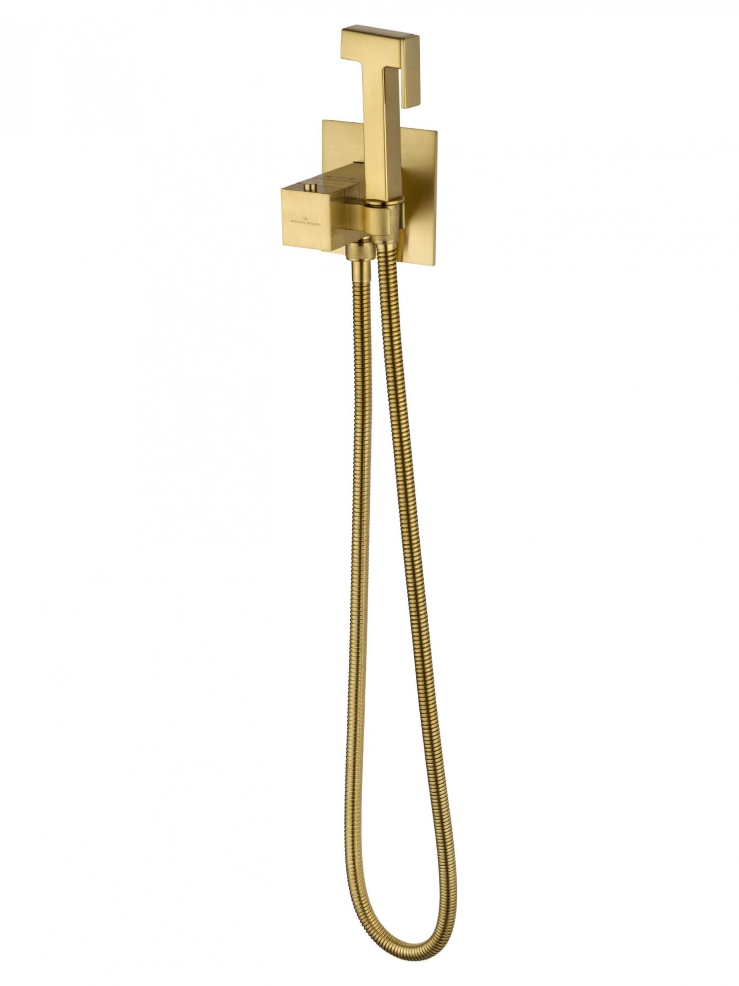 Смеситель с гигиеническим душем и термостатом встраиваемый WONZON & WOGHAND, Брашированное золото (WW-88829910-BG)