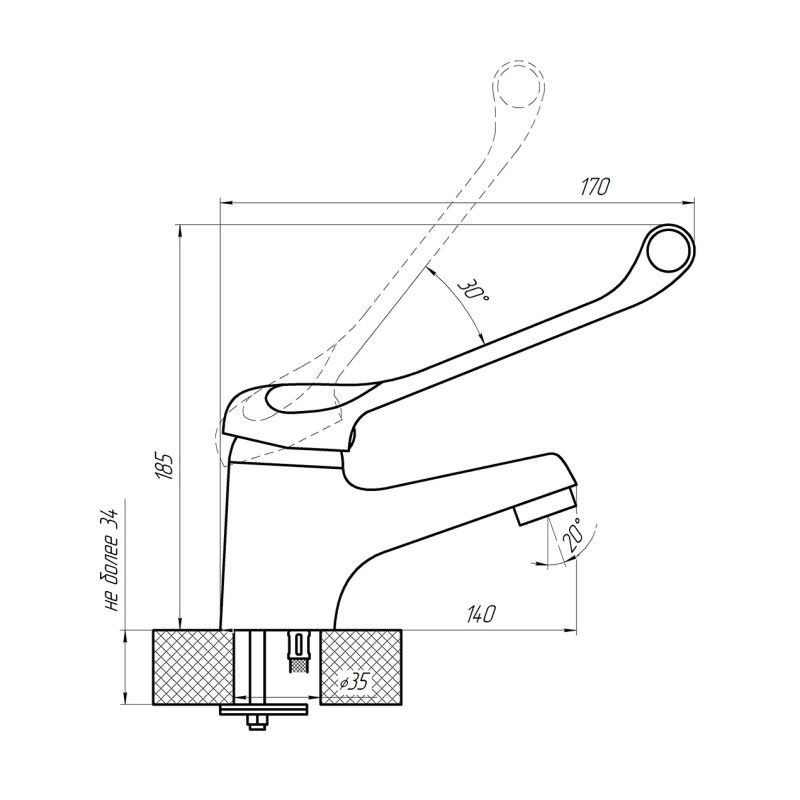 Смеситель Российского производства бренда Сантаком с хирургической ручкой. Все изделия завода выделяются отличным качеством и доступной ценой.