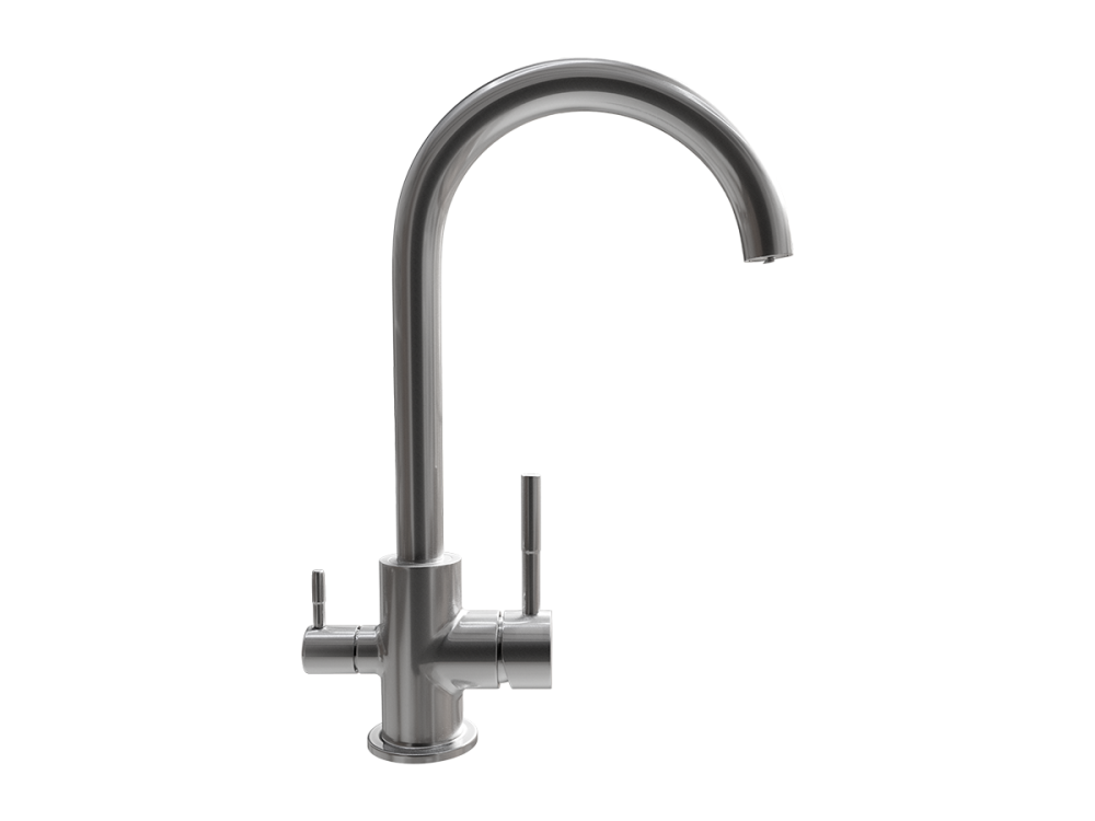 ULGRAN STEEL 020 - двухрычажный кухонный смеситель с дополнительным краном для подключения фильтрованной воды.