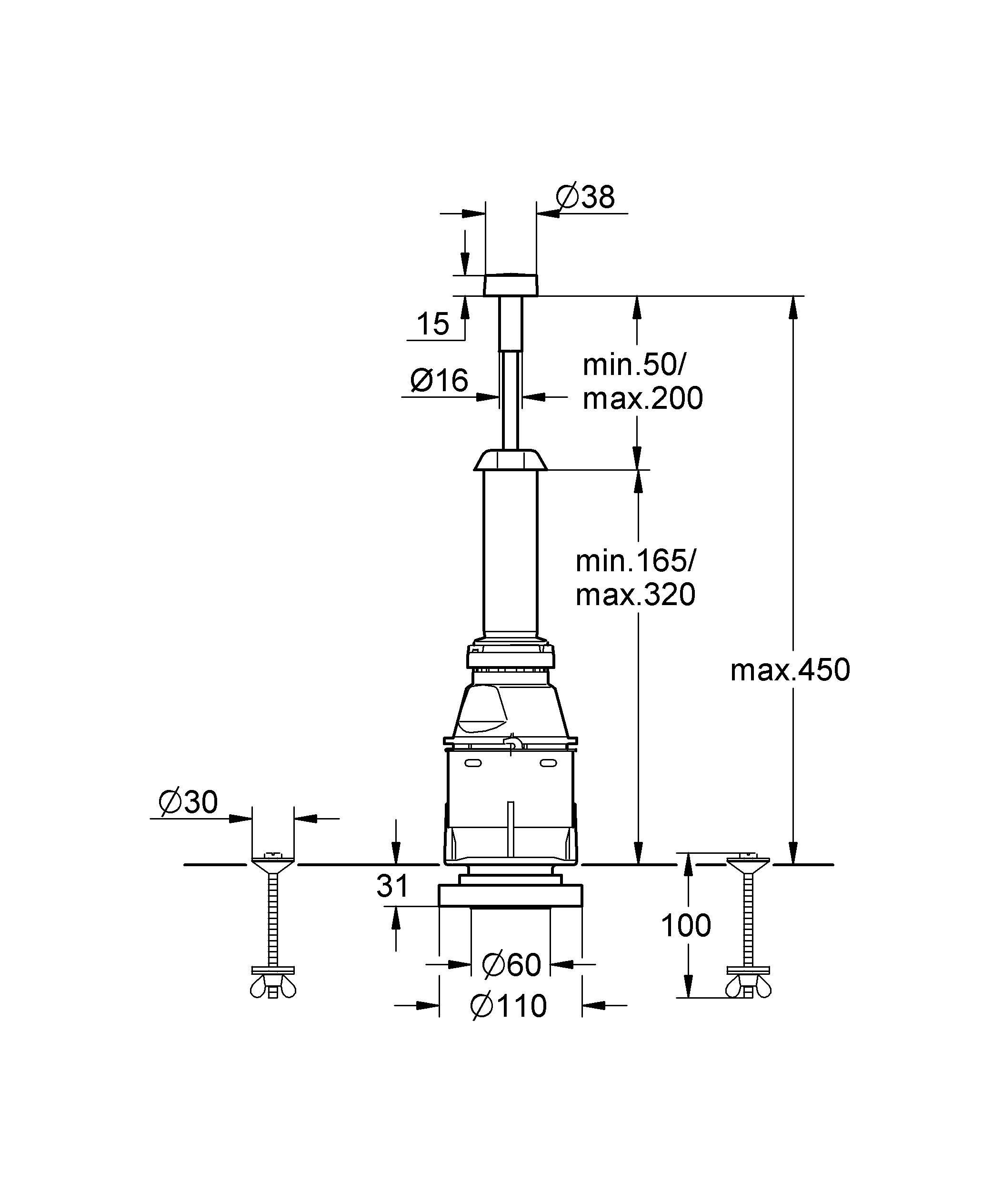 Смывной клапан для отверстия в крышке бачка (диаметр 16-35 мм) GROHE (37088PI0)