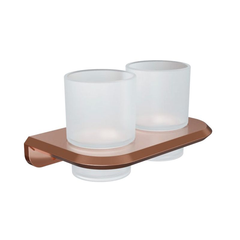 Двойной подвесной стакан SPACE в бронзовом оттенке с матовым стеклом сочетает комфорт и стиль. Настенное крепление экономит место, корпус ZAMAK + SUS-201 с антиследовым покрытием прост в уходе.