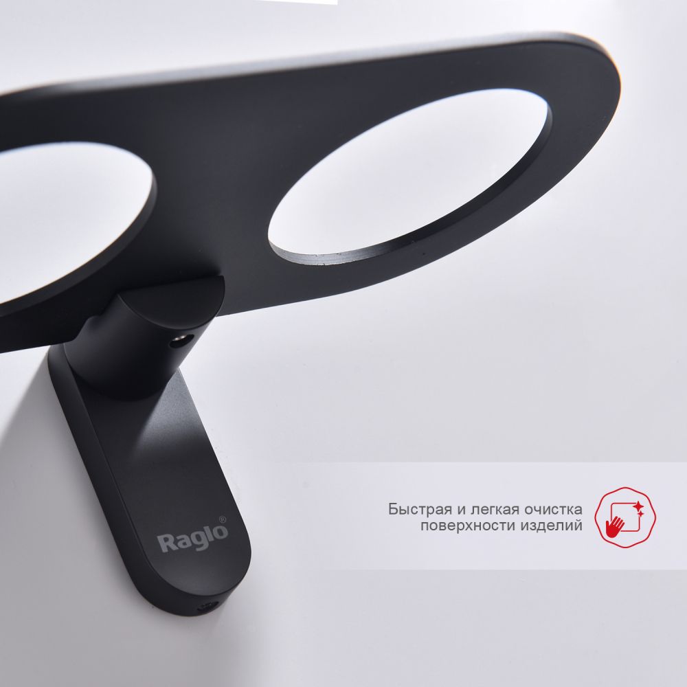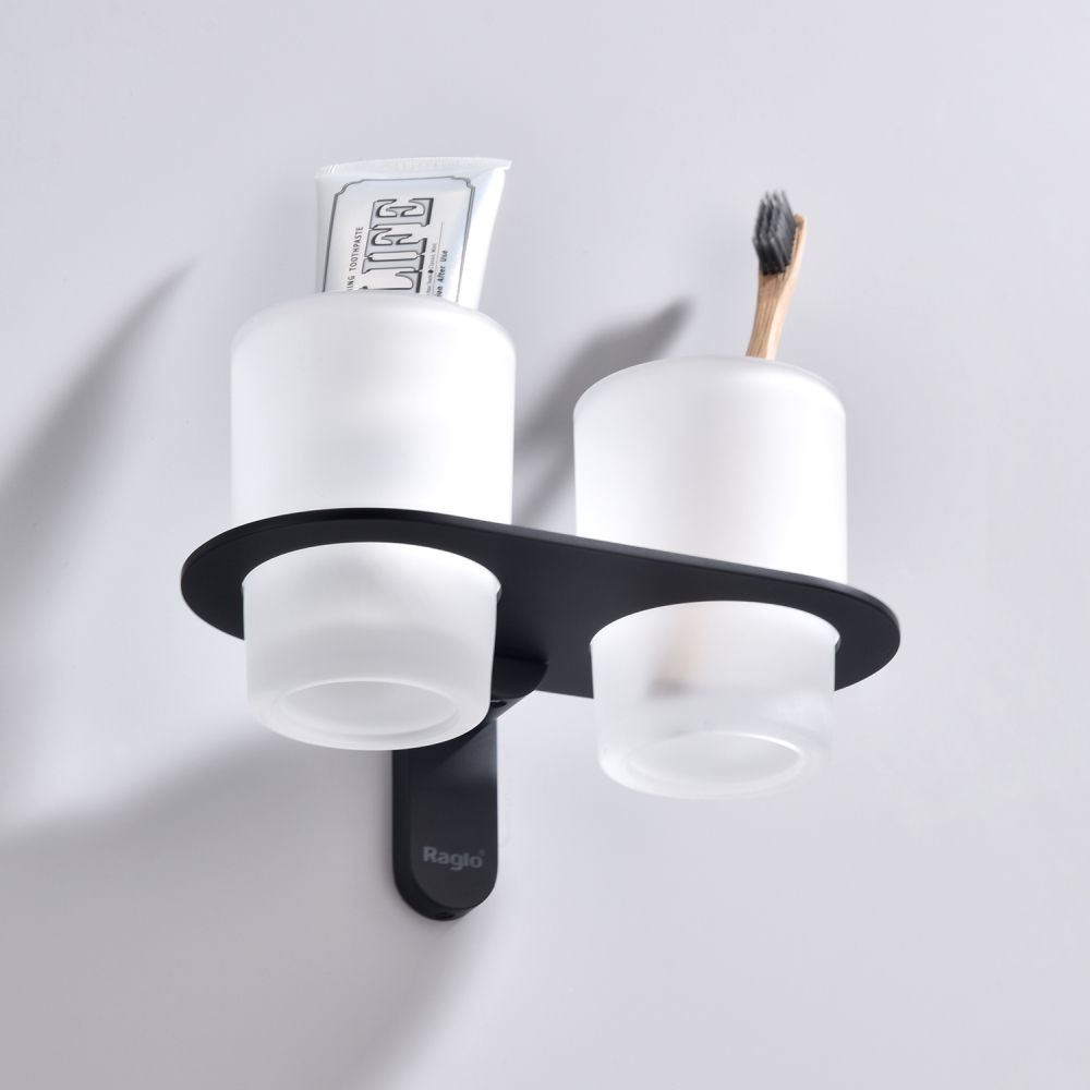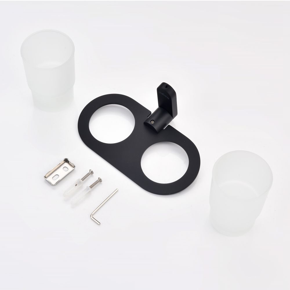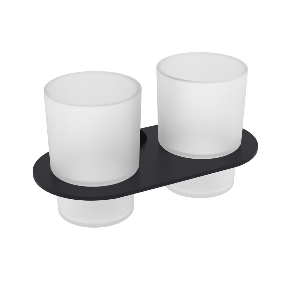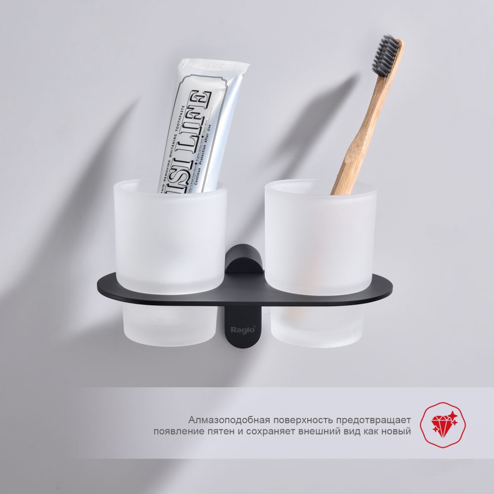 Raglo R300.08.06 Два стеклянных стакана с держателем. Форма округлая, цвет - черный, полуматовое покрытие. Крепление в комплекте.