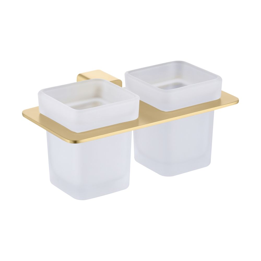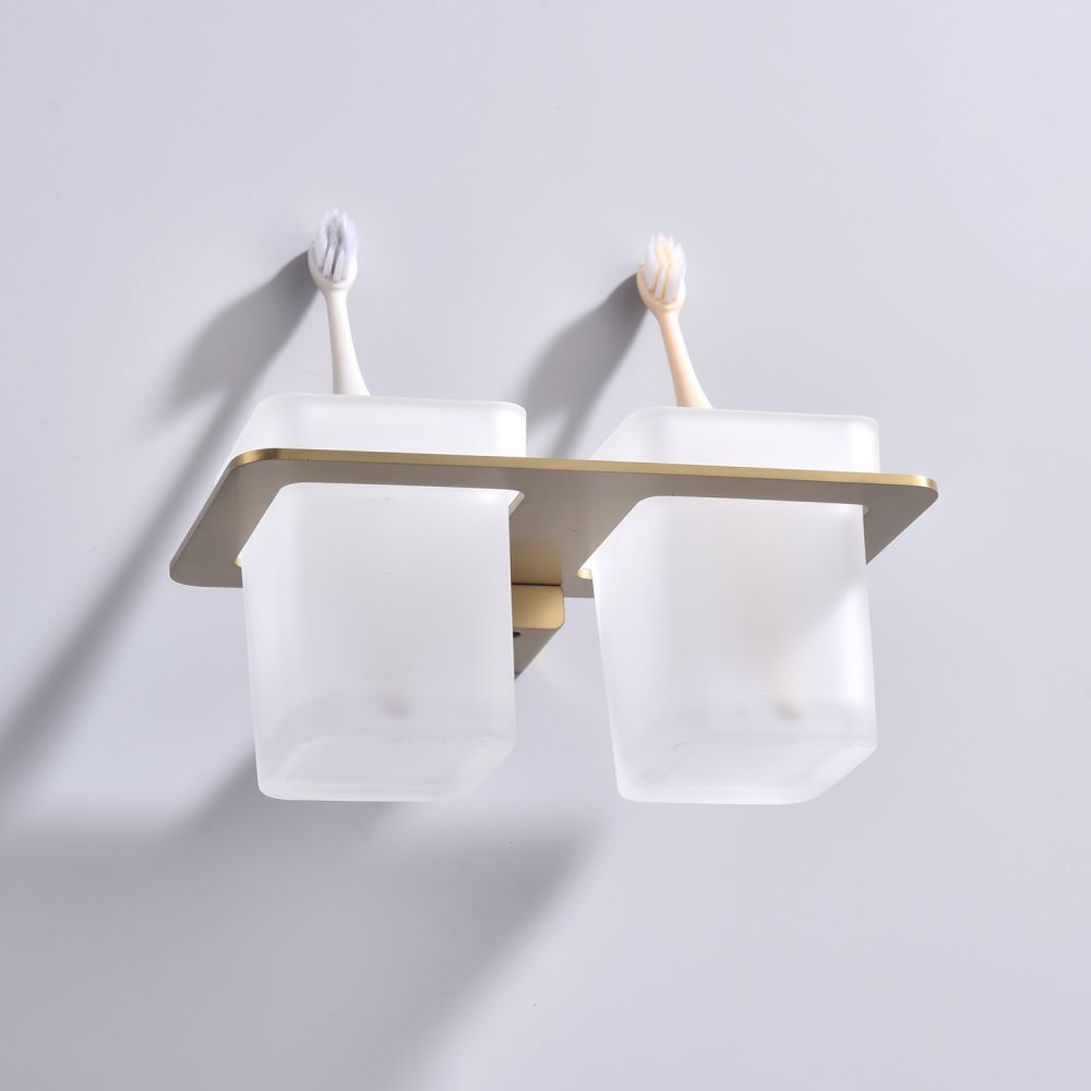 Дизайн: Держатель выполнен в цвете золотой сатин, что придает ему современный и элегантный вид. Лаконичный дизайн стаканов гармонично сочетается с любым интерьером ванной комнаты.