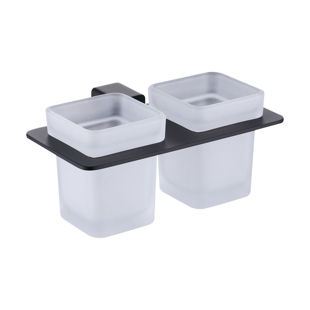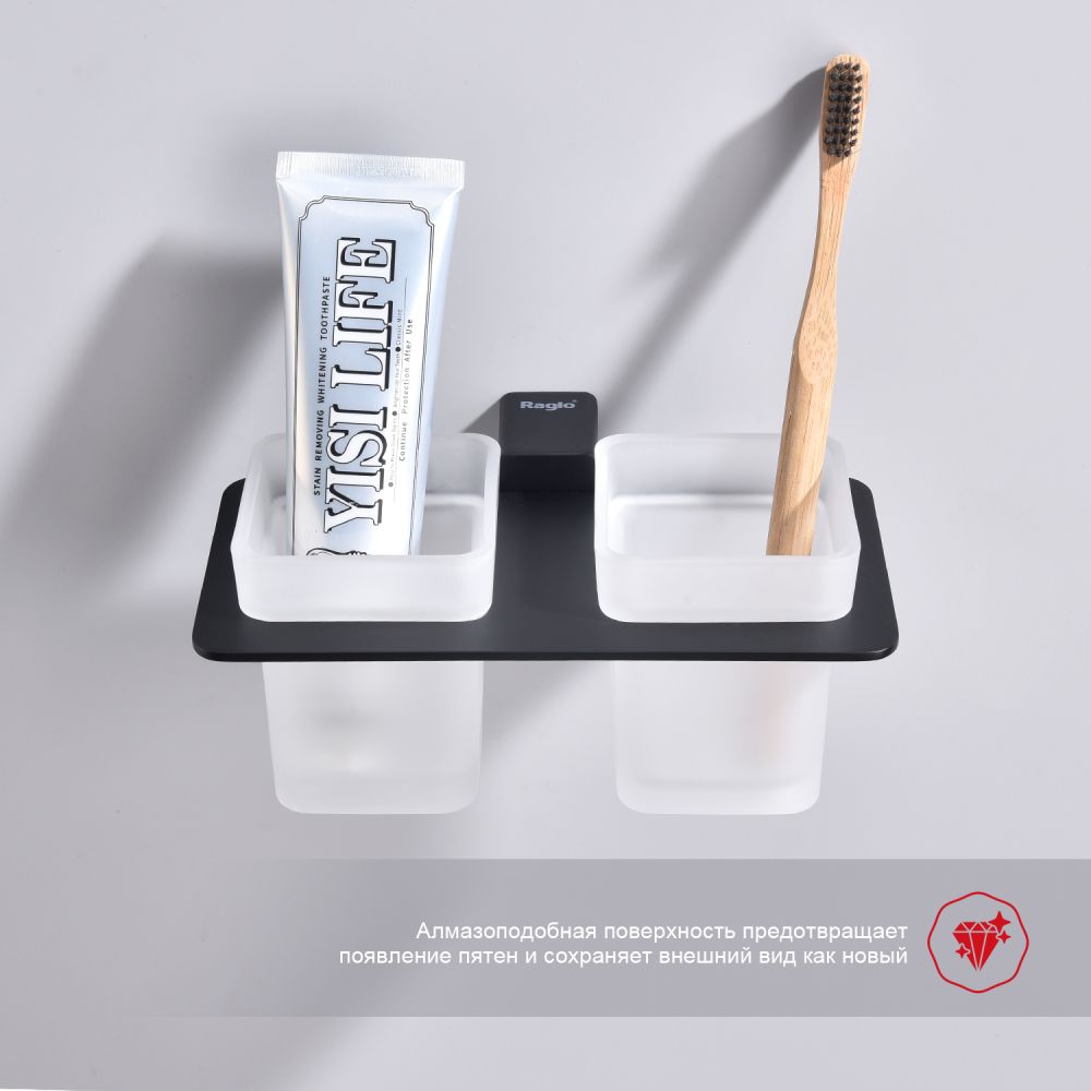 Дизайн: Держатель выполнен в черном цвете, что придает ему современный и элегантный вид. Лаконичный дизайн стаканов гармонично сочетается с любым интерьером ванной комнаты.