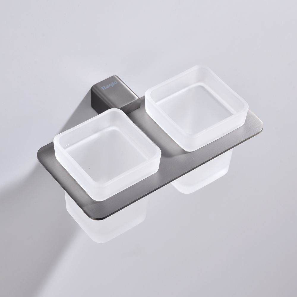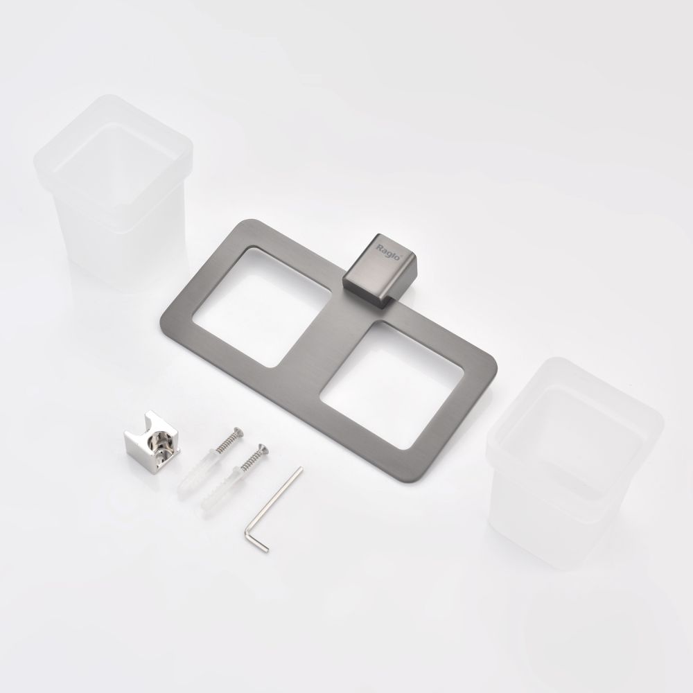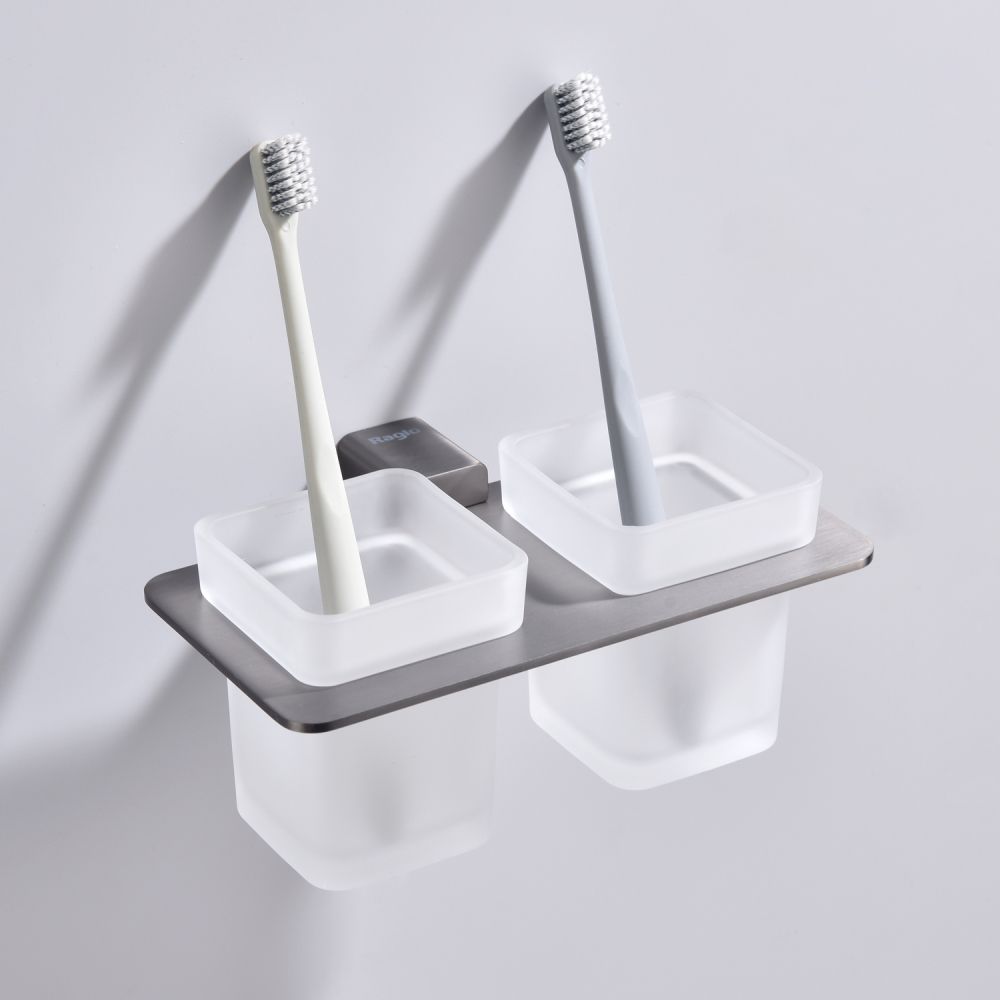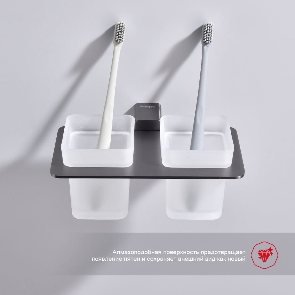 Дизайн: Держатель выполнен в цвете графит, что придает ему современный и элегантный вид. Лаконичный дизайн стаканов гармонично сочетается с любым интерьером ванной комнаты.