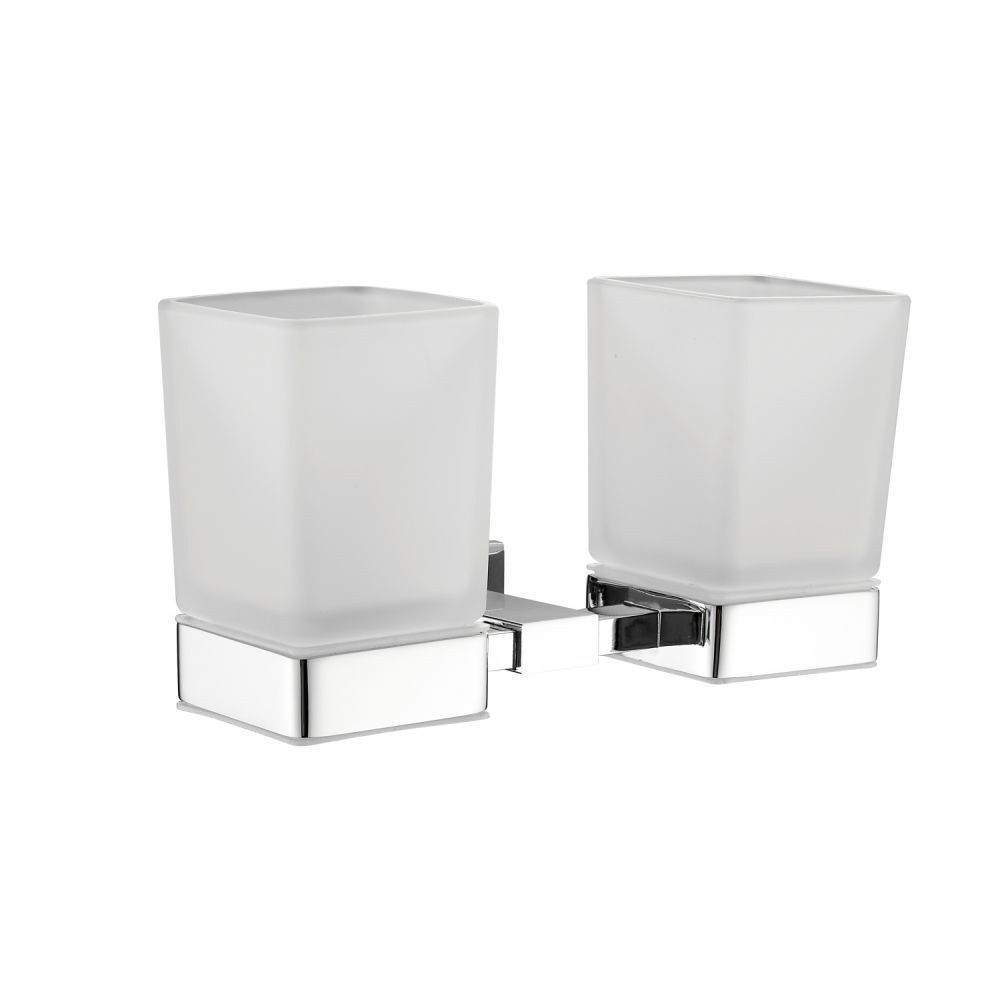 Стакан для ванной комнаты двойной Shevanik SG5622, хром. Монтаж: настенный. Материал: латунь/стекло.