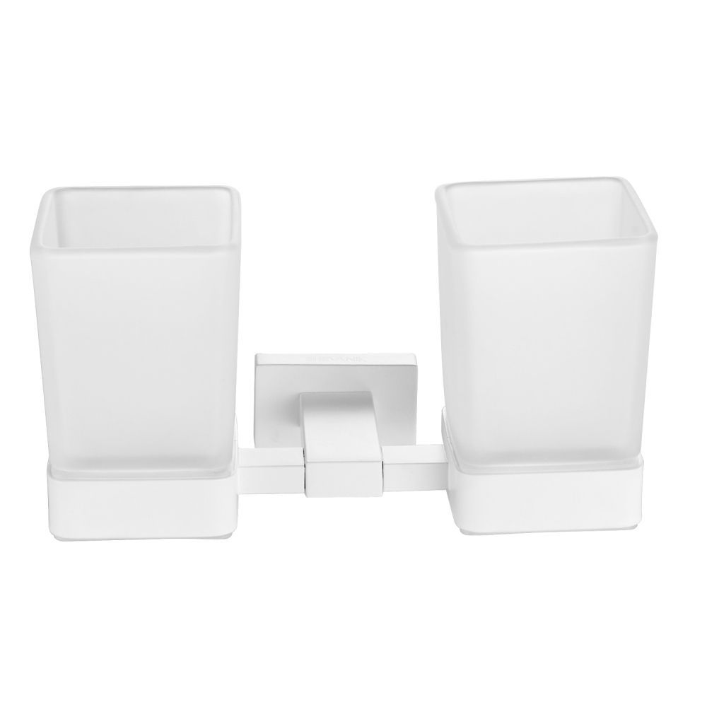 Стакан для ванной комнаты двойной Shevanik SG5622C, белый. Монтаж: настенный. Материал: латунь/стекло.