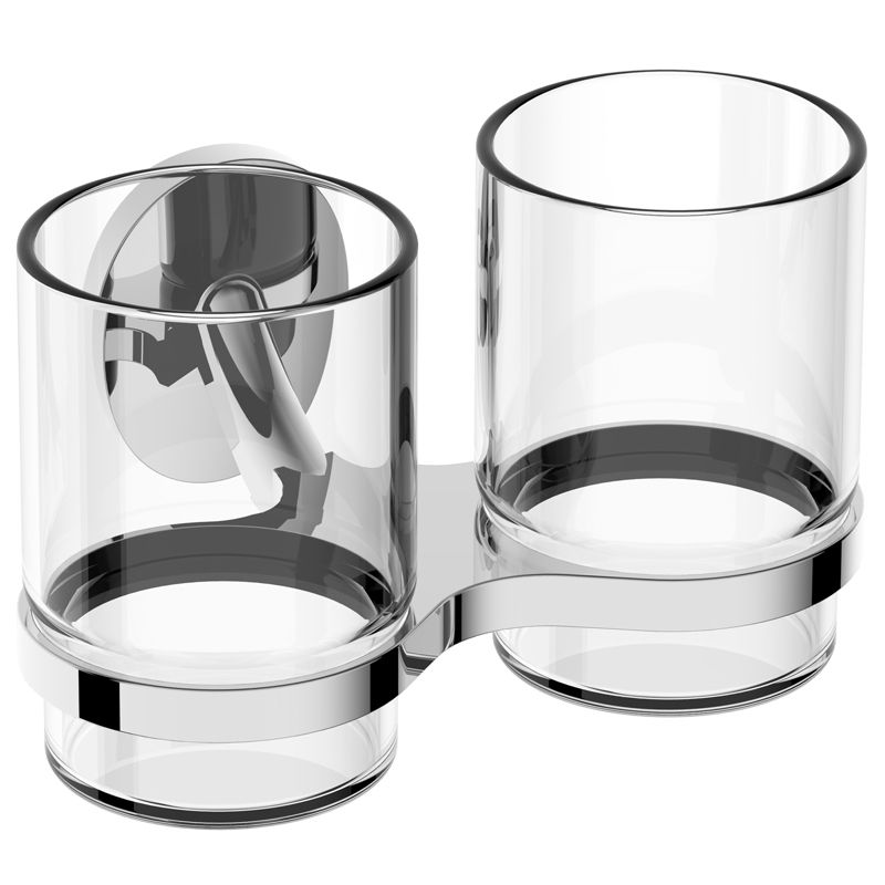 Двойной стакан для зубных щеток Rush Fiji FI18320 с настенным держателем с лаконичным современным дизайном округлой формы будет гармонично сочетаться с интерьером любой ванной комнаты.