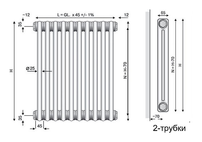 Стальной секционный радиатор Arbonia 2035. Высота 350 мм. Длина 720 мм. Монтажная глубина 65 мм. Теплоотдача 448 Вт. Цвет RAL 9016 (белый). В комплект поставки входят: стальной радиатор, два присоединительных переходника, переходник под кран Маевского и заглушка.