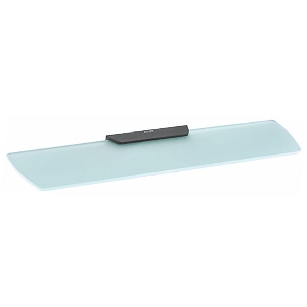 Полочка изготовлена из закаленного матового стекла. Материал держателя - металл с черным покрытием.