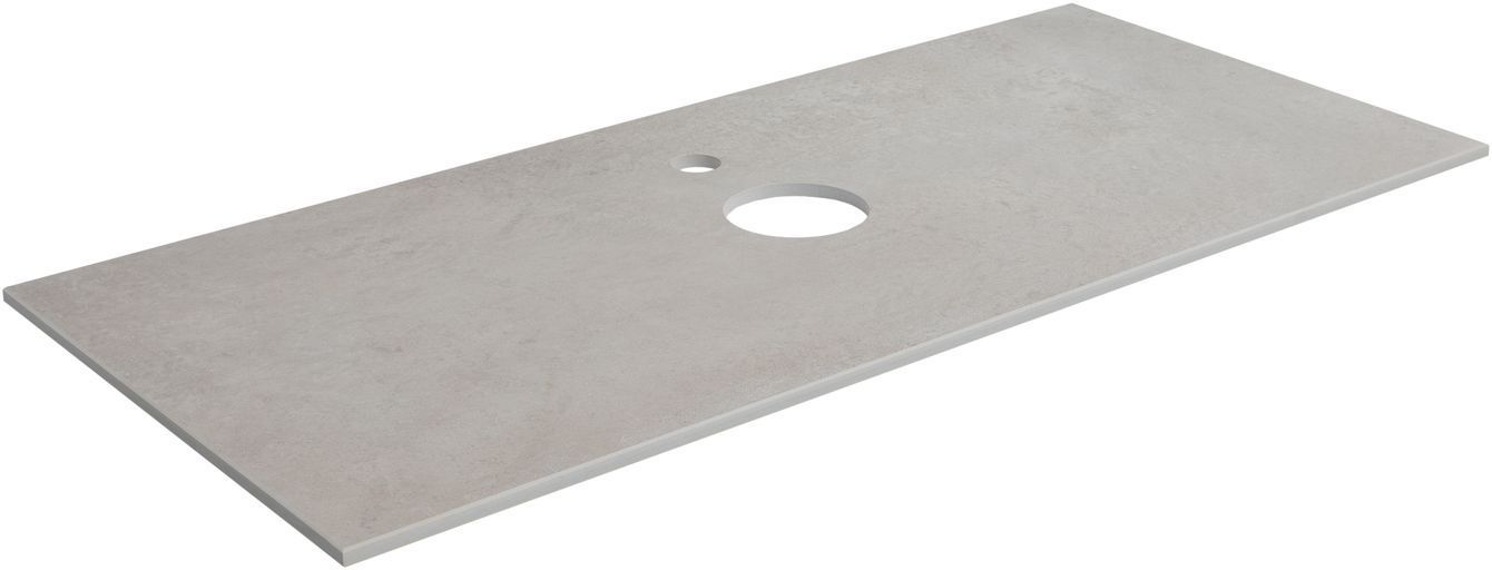 Столешница из керамогранита в сером цвете "под бетон" толщиной 10 мм предназначена для установки сверху на тумбу Nova Lite шириной 100 см. Керамогранит прекрасно подходит для помещений с повышенной влажностью. Это влагостойкий материал высокой плотности, благодаря чему ему не страшны агрессивные вещества. Он обладает также исключительной твердостью, что делает его стойким к истиранию. В столешнице предусмотрено отверстие для установки накладной раковины и вывода шлангов подводки воды. При установке смесителя на столешницу отверстие необходимо будет сделать самостоятельно в том месте, в котором удобно.