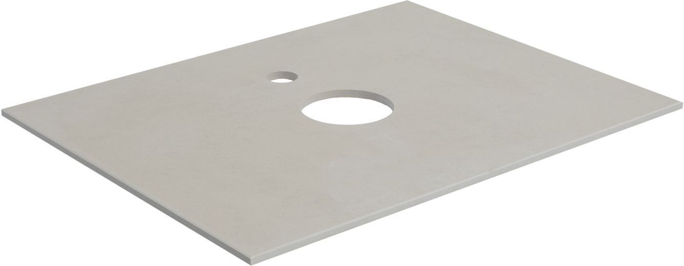 Столешница из керамогранита в бежевом цвете толщиной 10 мм предназначена для установки сверху на тумбу Nova Lite шириной 60 см. Керамогранит прекрасно подходит для помещений с повышенной влажностью. Это влагостойкий материал высокой плотности, благодаря чему ему не страшны агрессивные вещества. Он обладает также исключительной твердостью, что делает его стойким к истиранию. В столешнице предусмотрено отверстие для установки накладной раковины и вывода шлангов подводки воды. При установке смесителя на столешницу отверстие необходимо будет сделать самостоятельно в том месте, в котором удобно.