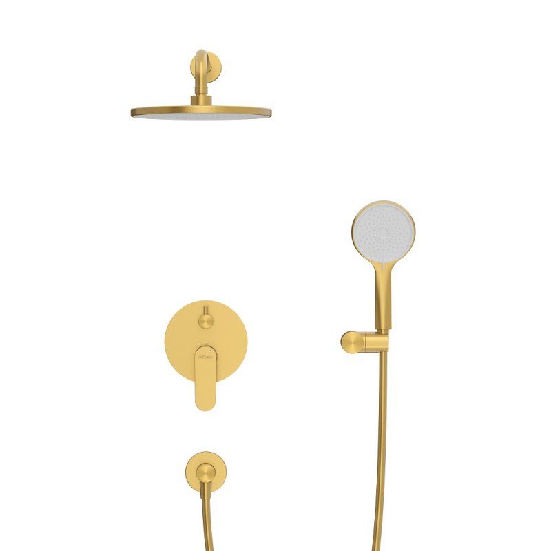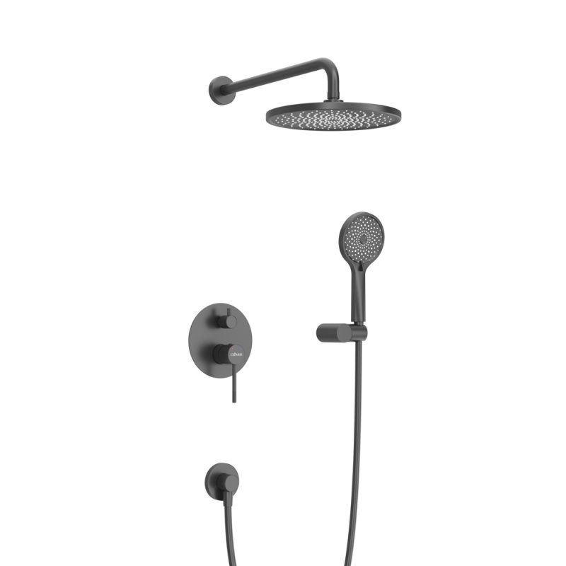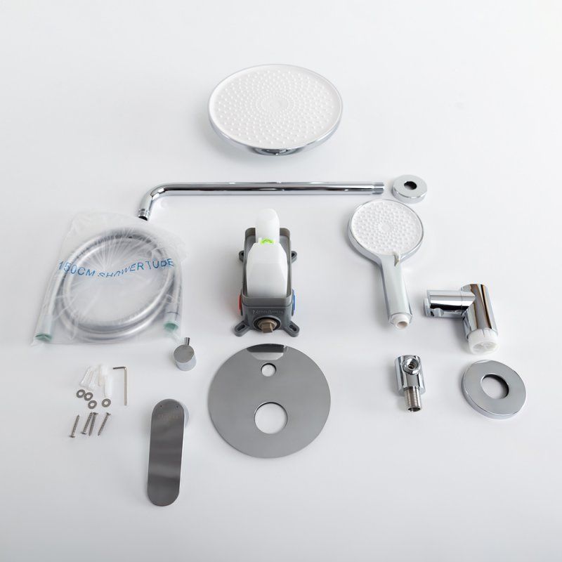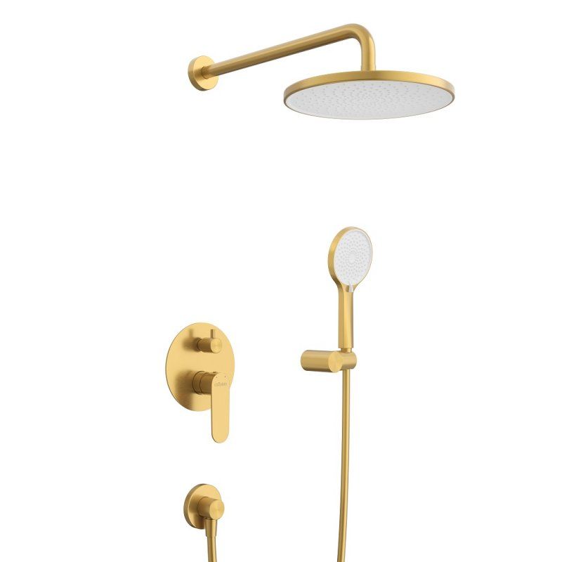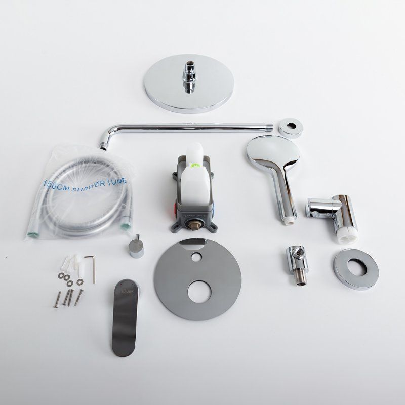 Оснащение: встраиваемый смеситель с переключателем на два выхода, верхний душ с кронштейном, ручной душ 3-х режимный со шлангом, штуцером и держателем