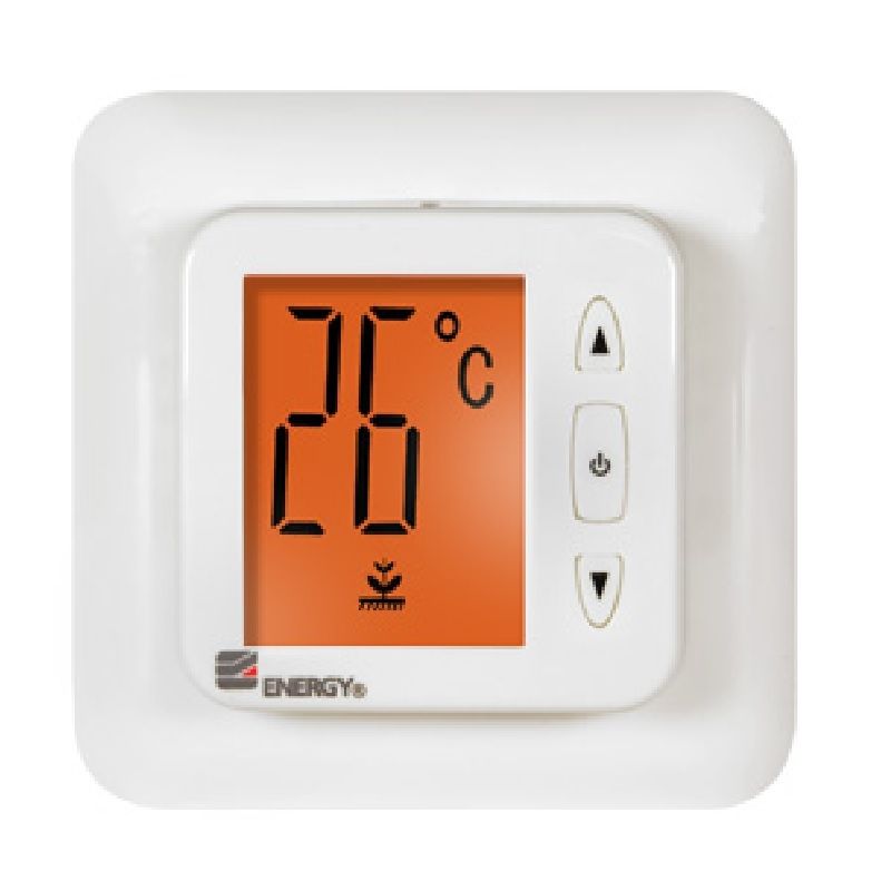 Электронный терморегулятор с выносным термодатчиком и большим жидкокристаллическим дисплеем Energy TK02 предусматривает установку в стандартную электромонтажную коробку.