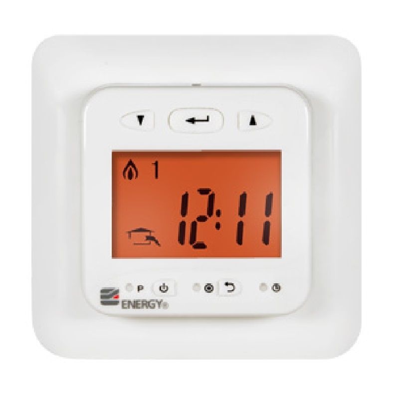 Электронный программируемый терморегулятор Energy TK 03 с жидкокристаллическим дисплеем и выносным датчиком температуры поверхности пола. Energy ТК 03 предназначен для скрытого утопленного монтажа с использованием стандартной монтажной коробки.